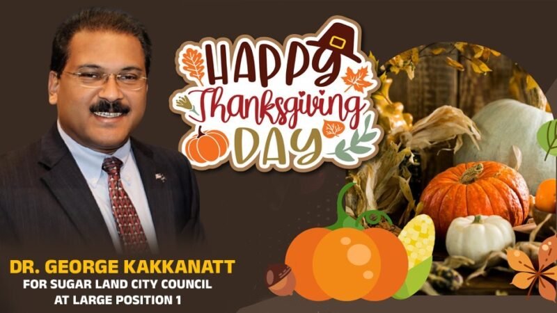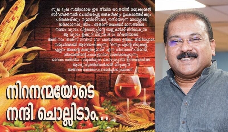 പലപ്പോഴും, അത്താഴത്തിന് മുന്‍പ്, എല്ലാവരും കൈകോര്‍ത്തു പിടിച്ച്, ജീവിതത്തില്‍ ലഭിച്ച അനുഗ്രഹങ്ങള്‍ക്ക് നന്ദി പറയുന്ന ഒരു പതിവുണ്ട്. ഈ നിമിഷമാണ് താങ്ക്സ് ഗിവിങ്ങിന്റെ ആത്മാവ്. 30 വര്‍ഷം മുന്‍പ് ഈ മണ്ണില്‍ വന്ന്, ഇവിടെ കുടുംബമായി, ഒരുപാട് സൗഹൃദങ്ങള്‍ നേടി, സുരക്ഷിതമായ ഒരു ജീവിതം നയിക്കാന്‍ കഴിഞ്ഞതില്‍ ഞാന്‍ ദൈവത്തിന് നന്ദി പറയുന്നു. ഈ രാജ്യം എനിക്ക് നല്‍കിയ അവസരങ്ങള്‍ ചെറുതല്ല. എന്റെ മക്കള്‍ക്ക് മികച്ച വിദ്യാഭ്യാസം നേടാനും, അവരുടേതായ സ്വപ്നങ്ങള്‍ പിന്തുടരാനും ഇവിടെ സാധിച്ചു.